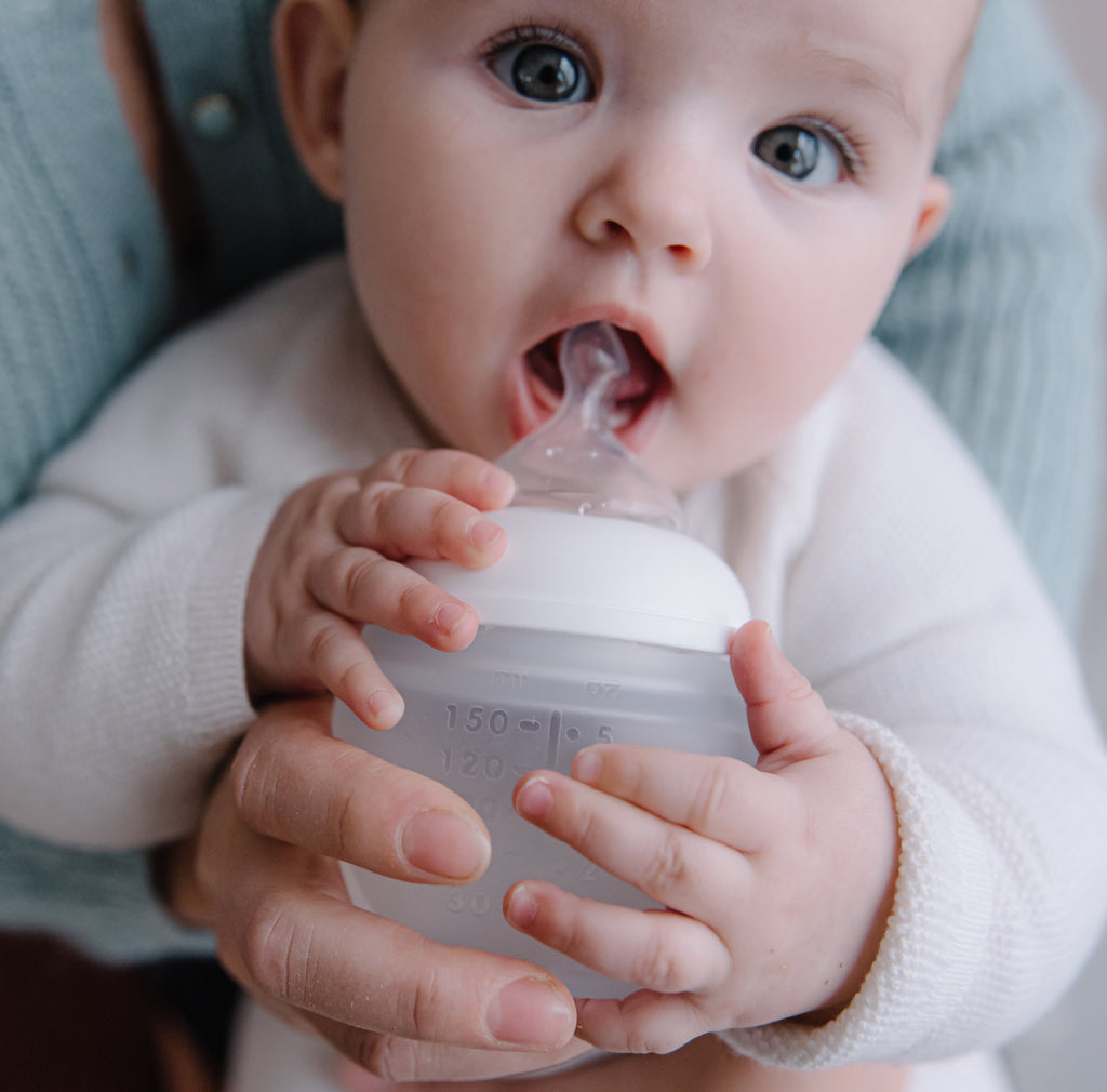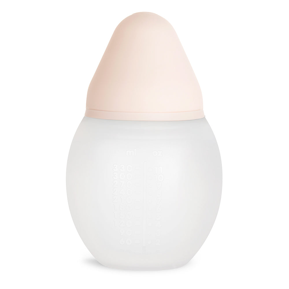 The Élhée baby bottle is supple and soft-to-the-touch, combining materials and a simple design-which pay homage to the natural curves and softness of motherhood. This baby feeding bottle has redesigned and innovated the baby bottle design to create a natural, round and soft bottle that replicates the female breast to enhance your baby's earliest feeding experience.