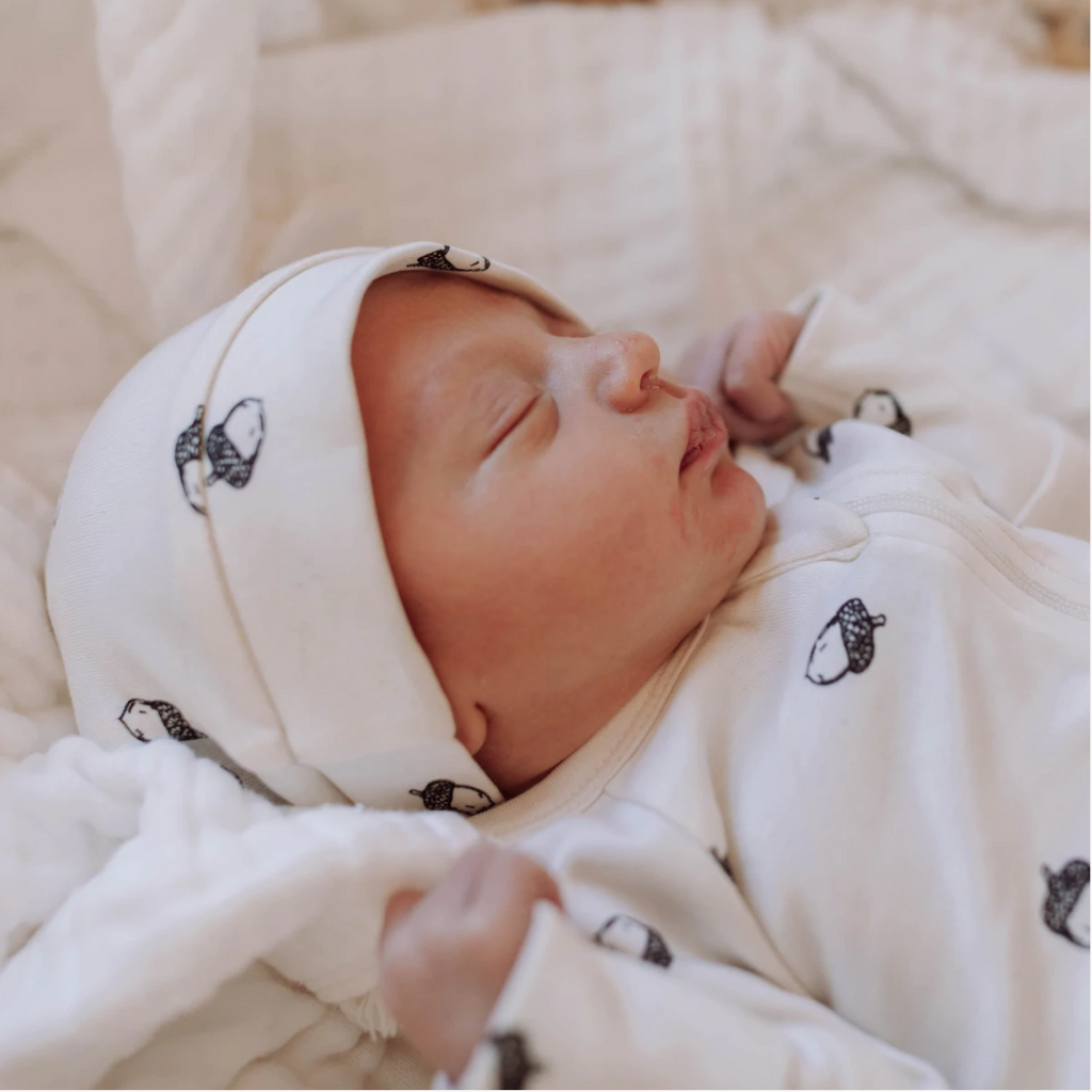 A beautifully classic baby style top-knot hat