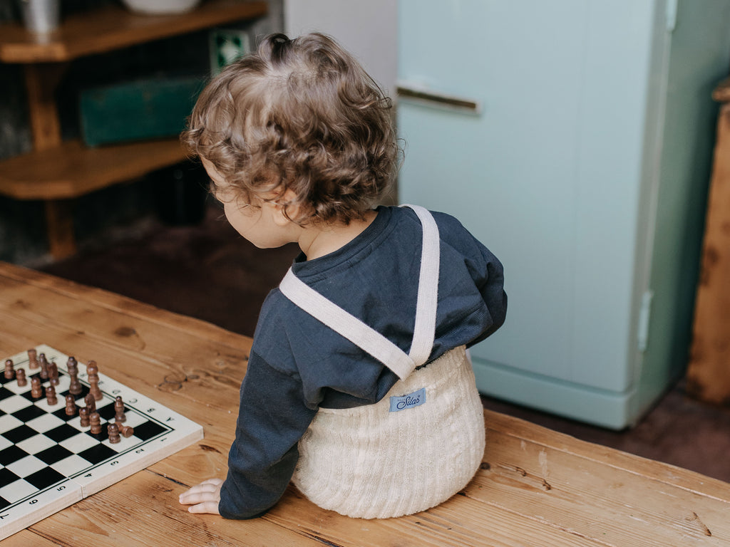 It is important that your little one always wears the tights with braces in the correct way (as shown in all our pictures) - with one brace securely placed on the left shoulder and the other brace on the right shoulder in order to avoid abrasions.