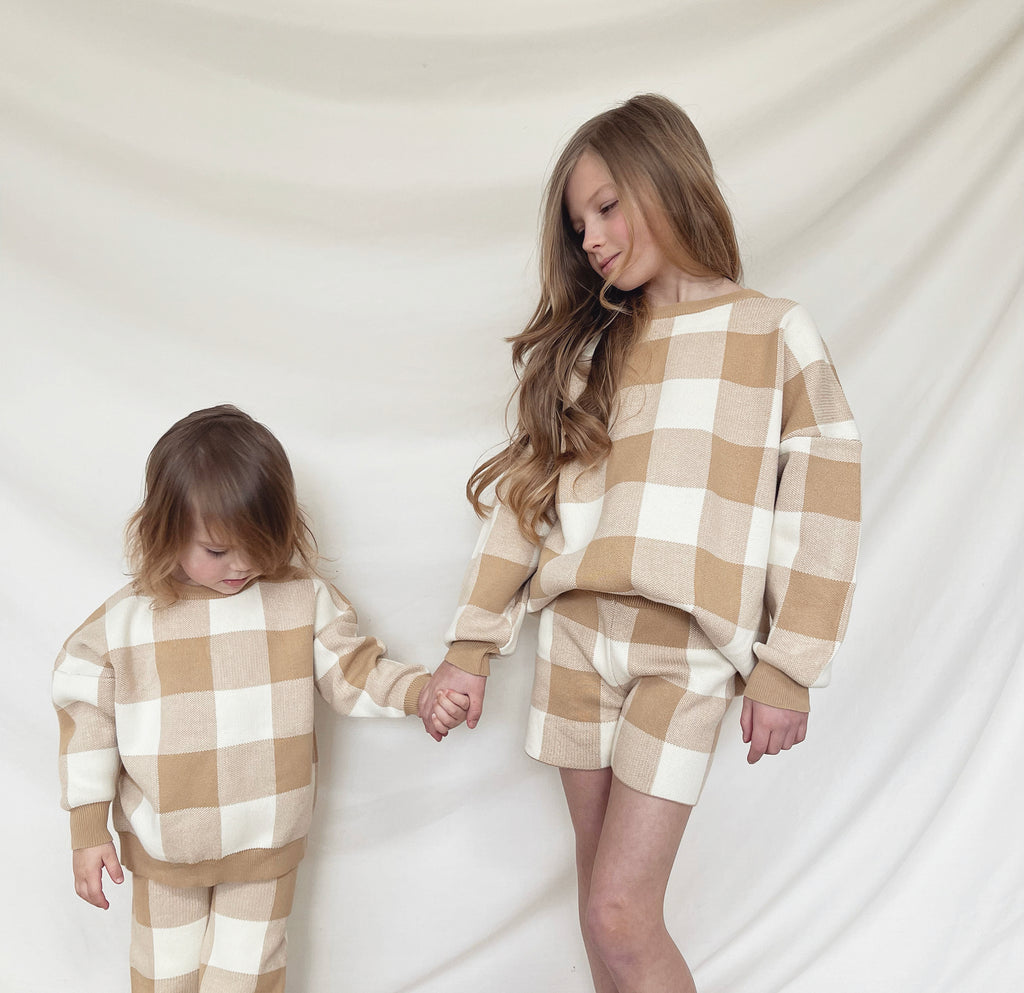 The cutest loose-fit and light-weight knit jumper featuring over-sized chequered pattern.