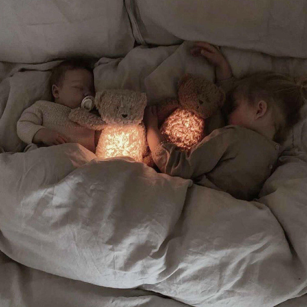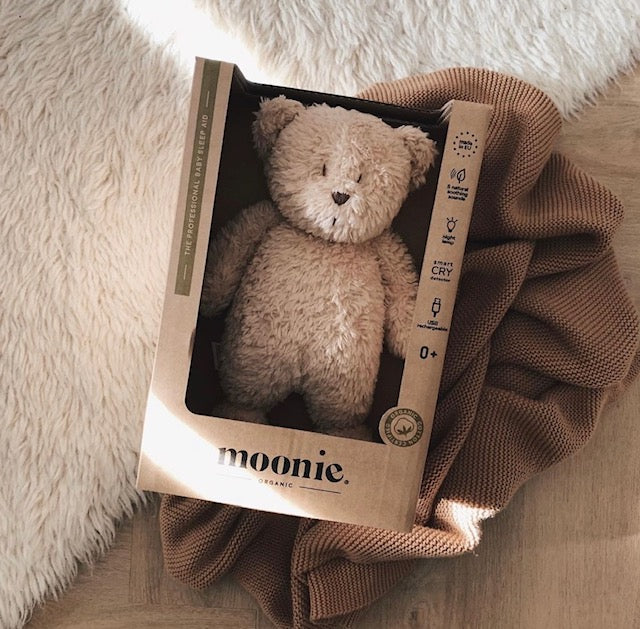 This beautiful bear is made from certified organic cotton, with a kind-to-our planet recyclable filling. 100% safe for newborns, this teddy bear is a professional sleep companion that helps your child drift off peacefully. Thanks to safe, natural pink noise (including the sound of a mothers womb), it allows children to calm down and fall asleep faster. It is also a bedside lamp with 7 different colour settings. Moonie noise activation sensor will hum and the light will gently shine to comfort and soothe when your baby starts to cry. This gorgeous bear is the most adorable must-have for your bubba.