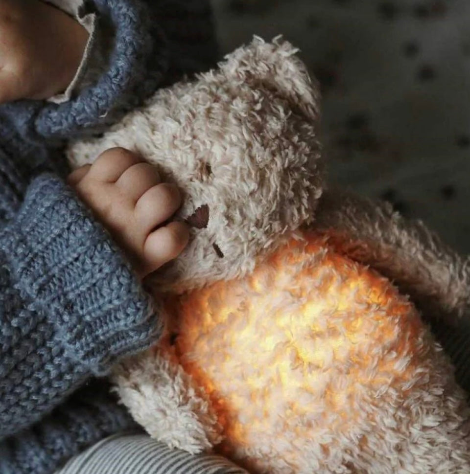 This beautiful bear is made from certified organic cotton, with a kind-to-our planet recyclable filling. 100% safe for newborns, this teddy bear is a professional sleep companion that helps your child drift off peacefully. Thanks to safe, natural pink noise (including the sound of a mothers womb), it allows children to calm down and fall asleep faster. It is also a bedside lamp with 7 different colour settings. Moonie noise activation sensor will hum and the light will gently shine to comfort and soothe when your baby starts to cry. This gorgeous bear is the most adorable must-have for your bubba.